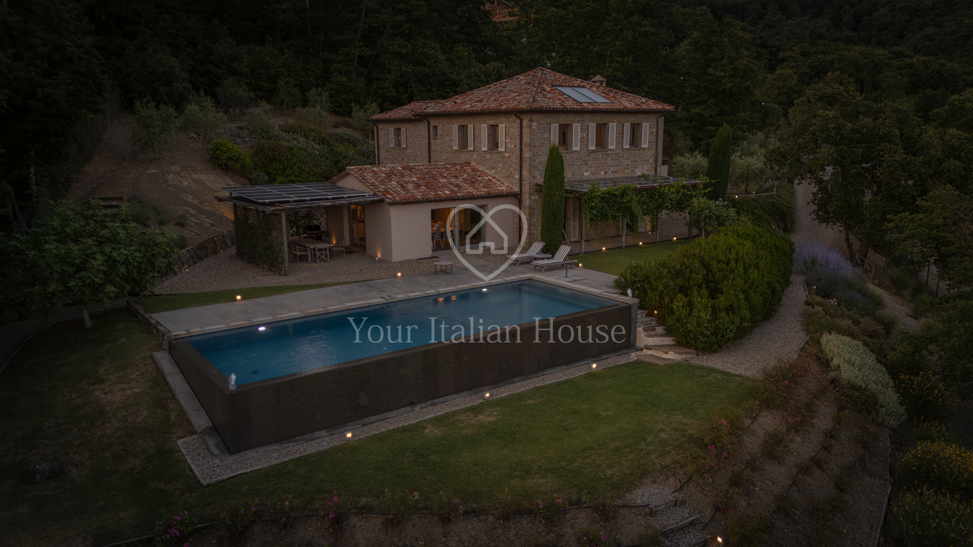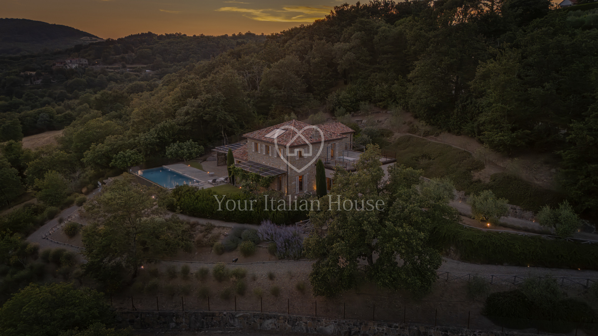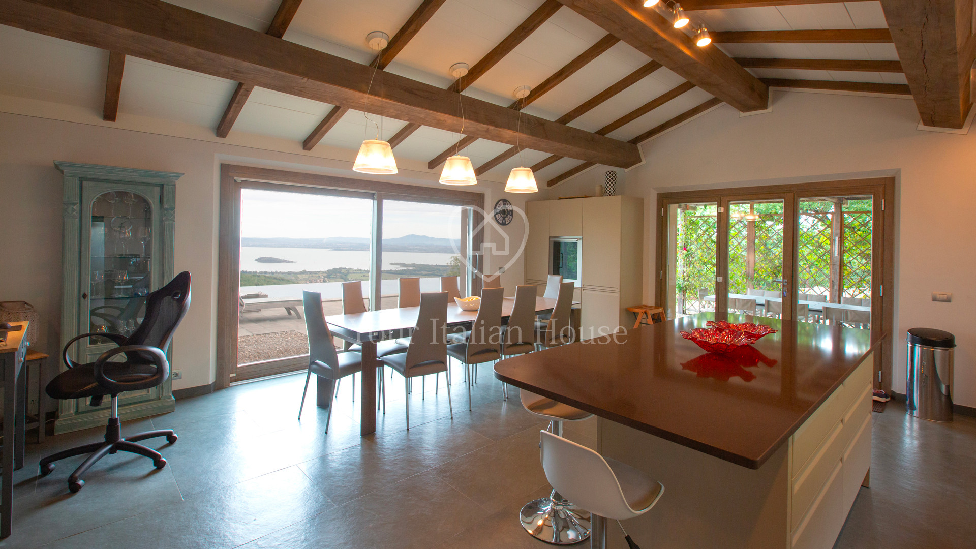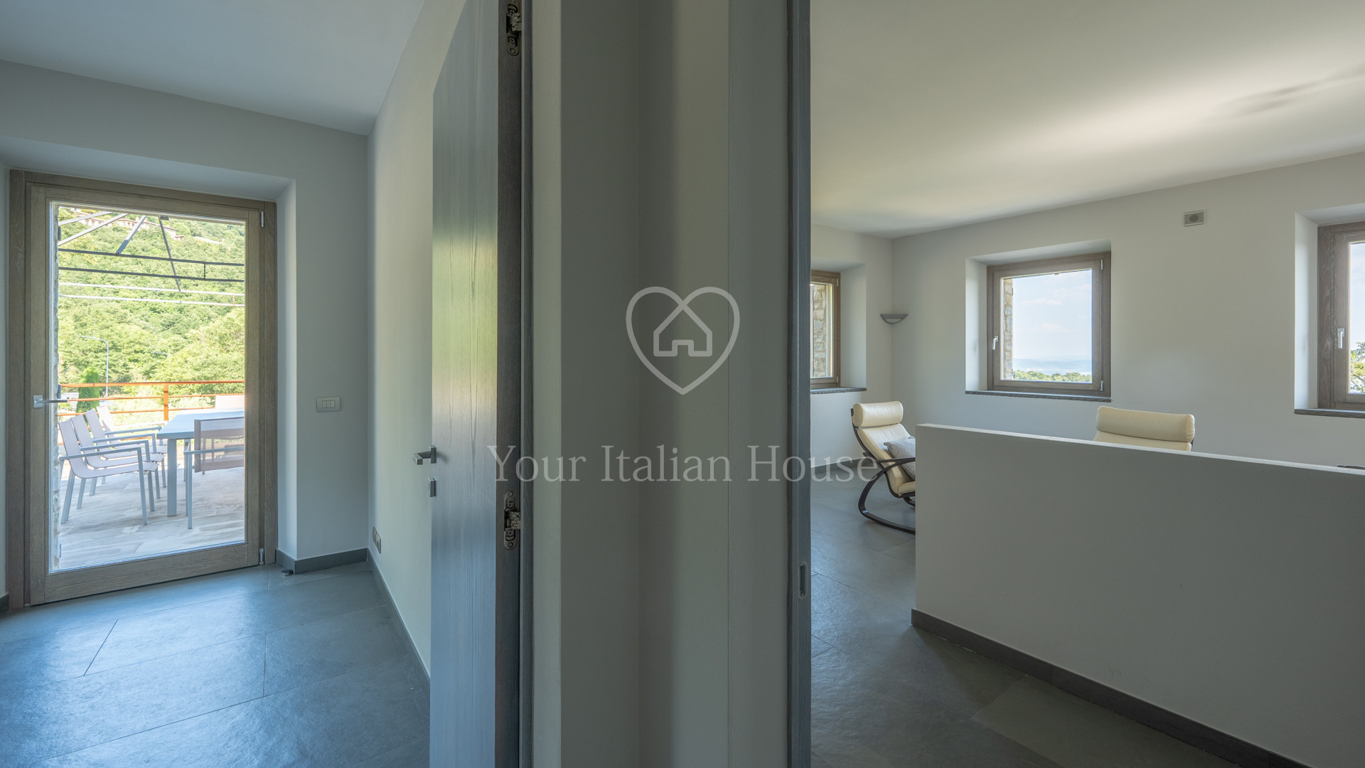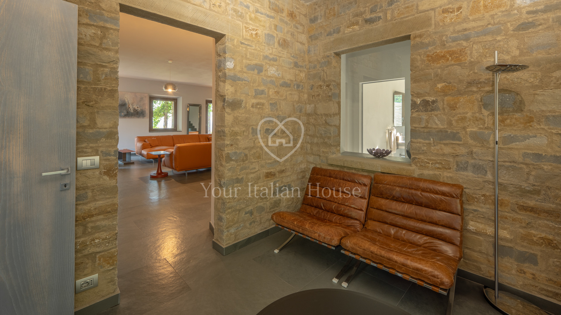 Dit prachtige pand, uniek in zijn soort en volledig gerenoveerd, bevindt zich in een schitterend omheind park van ongeveer 3.700 m² met fruitbomen en olijfbomen. Het hoogtepunt van de buitenruimte is zonder twijfel het verwarmde zwembad van 12 x 5 m, dat maximaal comfort biedt in elk seizoen. Het zwembad heeft een gelijkmatig, randloos oppervlak, wat een visueel spectaculair effect creëert en optimaal uitzicht biedt over het panoramische landschap.Op de begane grond verwelkomt de villa u met een ruime open keuken, waarin functioneel design en innovatie samenkomen. De keuken, uitgerust met hoogwaardige apparatuur en luxe afwerkingen, vormt het hart van het huis, ideaal voor gezellige momenten en culinaire hoogstandjes. Naast de keuken bevindt zich de royale woonkamer, verlicht door grote ramen. Ook op de begane grond bevindt zich een studeerkamer, ideaal voor werk of ontspanning met een goed boek. Twee slaapkamers en een badkamer maken dit niveau compleet en zorgen voor comfort en gebruiksgemak.Boven bieden twee tweepersoonsslaapkamers een privé en verfijnde sfeer, elk met een stijlvol ingerichte en-suite badkamer. Grote ramen bieden een prachtig uitzicht op het Trasimenomeer, en het ruime terras is een ideale plek om het landschap te bewonderen.De kelderverdieping herbergt een zeer ruime garage, ontworpen voor meerdere voertuigen, en biedt extra ruimte voor opslag of andere activiteiten. Deze multifunctionele ruimte is direct vanuit de woning toegankelijk.Kortom, deze villa is meer dan een huis: het is een ware woonervaring, waar modern design en natuurlijke schoonheid perfect samensmelten. De combinatie van elegante interieurs, charmante buitenruimtes en een adembenemend uitzicht op het Trasimenomeer maakt dit pand een unieke kans voor wie op zoek is naar het beste van hedendaags wonen in een exclusieve ambiance.