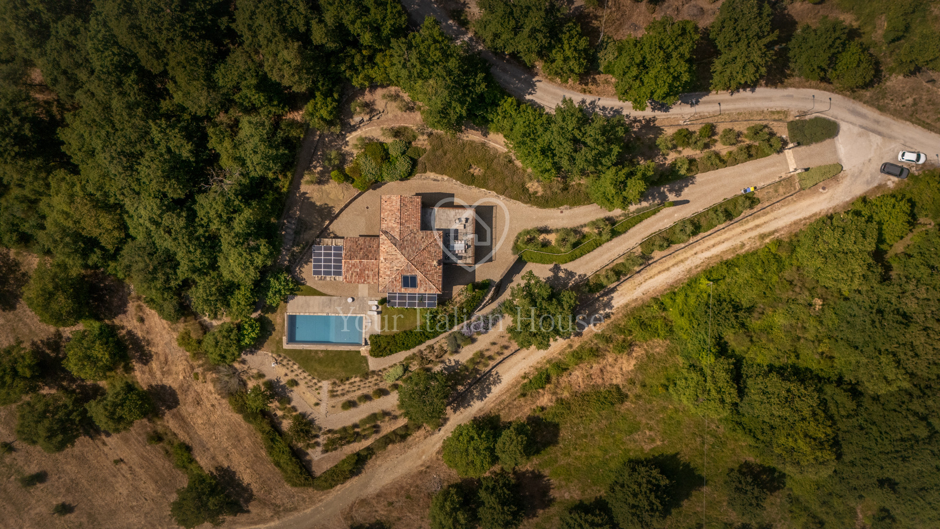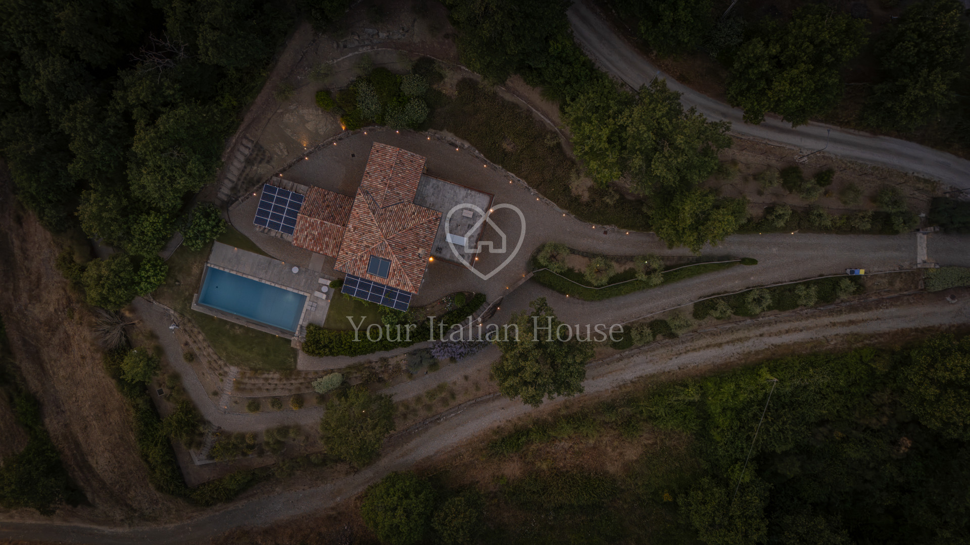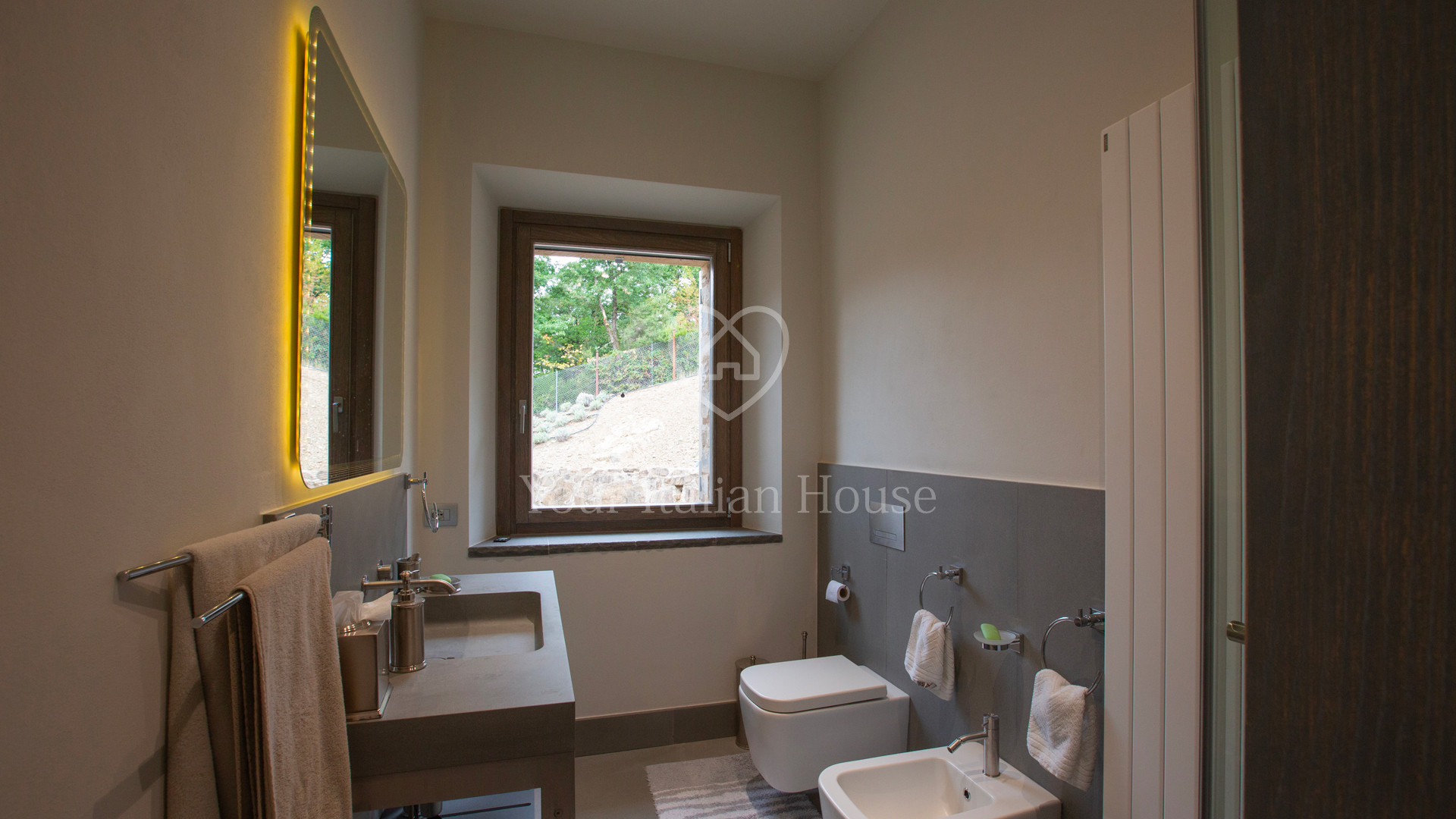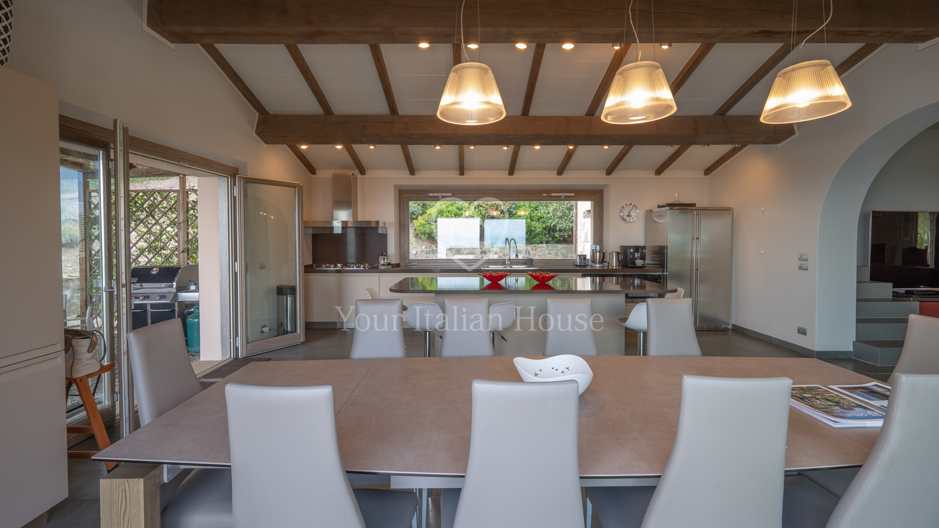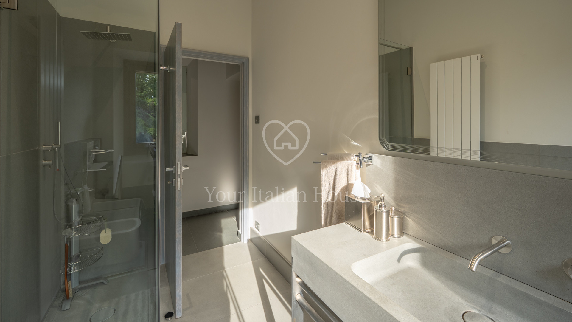 Dit prachtige pand, uniek in zijn soort en volledig gerenoveerd, bevindt zich in een schitterend omheind park van ongeveer 3.700 m² met fruitbomen en olijfbomen. Het hoogtepunt van de buitenruimte is zonder twijfel het verwarmde zwembad van 12 x 5 m, dat maximaal comfort biedt in elk seizoen. Het zwembad heeft een gelijkmatig, randloos oppervlak, wat een visueel spectaculair effect creëert en optimaal uitzicht biedt over het panoramische landschap.Op de begane grond verwelkomt de villa u met een ruime open keuken, waarin functioneel design en innovatie samenkomen. De keuken, uitgerust met hoogwaardige apparatuur en luxe afwerkingen, vormt het hart van het huis, ideaal voor gezellige momenten en culinaire hoogstandjes. Naast de keuken bevindt zich de royale woonkamer, verlicht door grote ramen. Ook op de begane grond bevindt zich een studeerkamer, ideaal voor werk of ontspanning met een goed boek. Twee slaapkamers en een badkamer maken dit niveau compleet en zorgen voor comfort en gebruiksgemak.Boven bieden twee tweepersoonsslaapkamers een privé en verfijnde sfeer, elk met een stijlvol ingerichte en-suite badkamer. Grote ramen bieden een prachtig uitzicht op het Trasimenomeer, en het ruime terras is een ideale plek om het landschap te bewonderen.De kelderverdieping herbergt een zeer ruime garage, ontworpen voor meerdere voertuigen, en biedt extra ruimte voor opslag of andere activiteiten. Deze multifunctionele ruimte is direct vanuit de woning toegankelijk.Kortom, deze villa is meer dan een huis: het is een ware woonervaring, waar modern design en natuurlijke schoonheid perfect samensmelten. De combinatie van elegante interieurs, charmante buitenruimtes en een adembenemend uitzicht op het Trasimenomeer maakt dit pand een unieke kans voor wie op zoek is naar het beste van hedendaags wonen in een exclusieve ambiance.