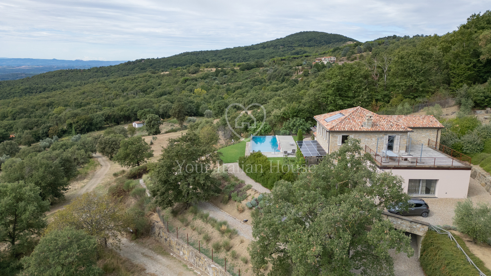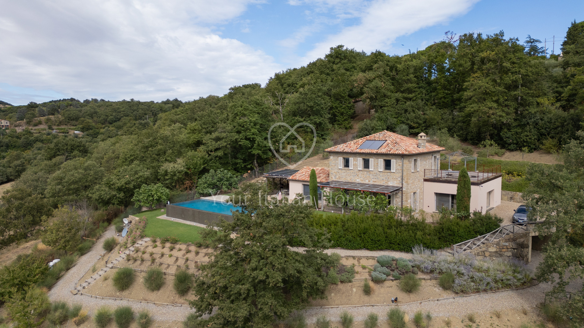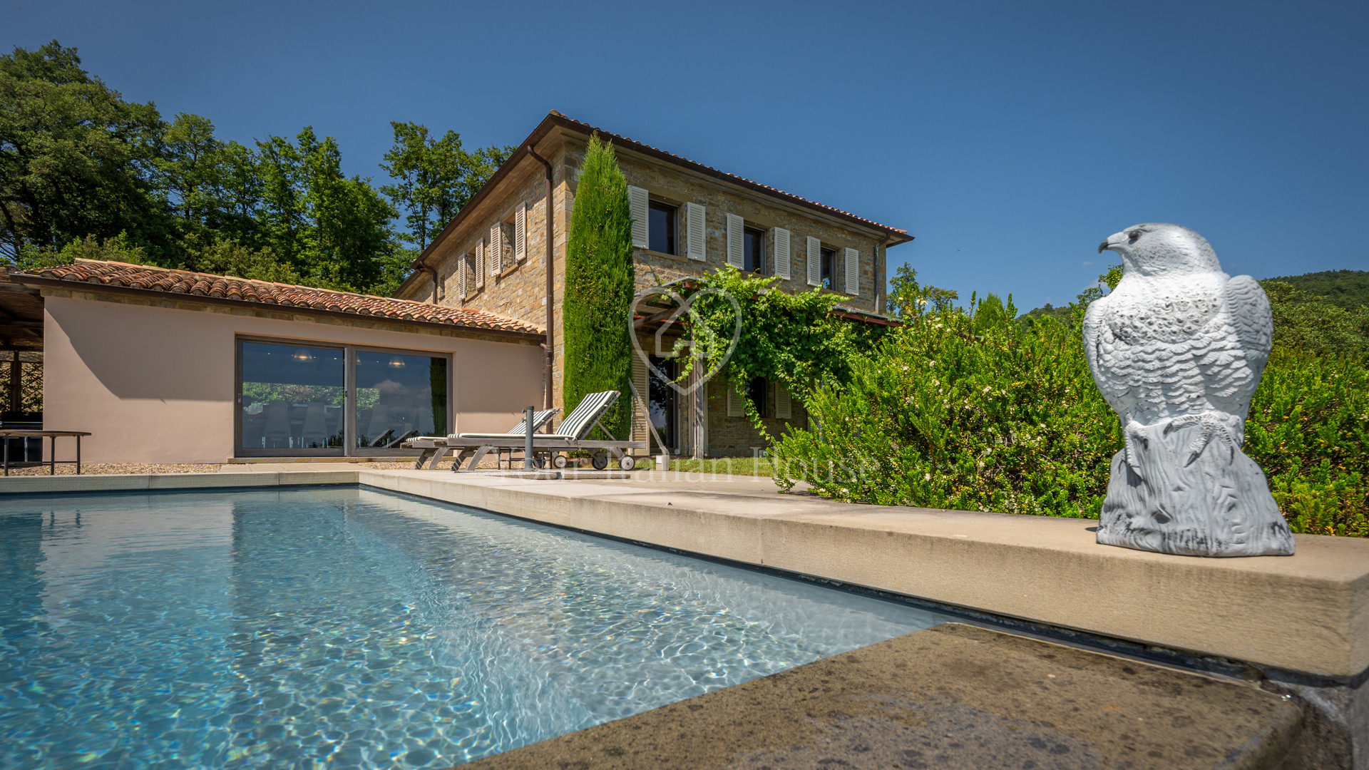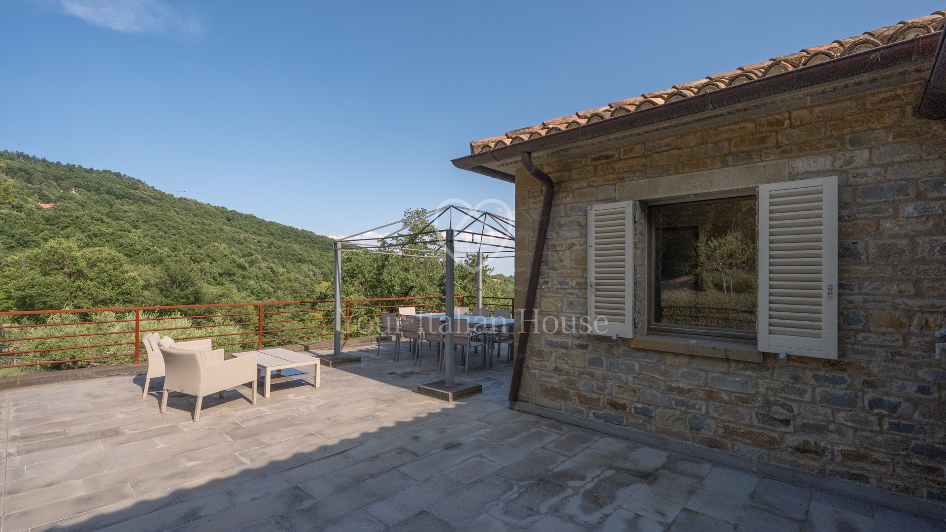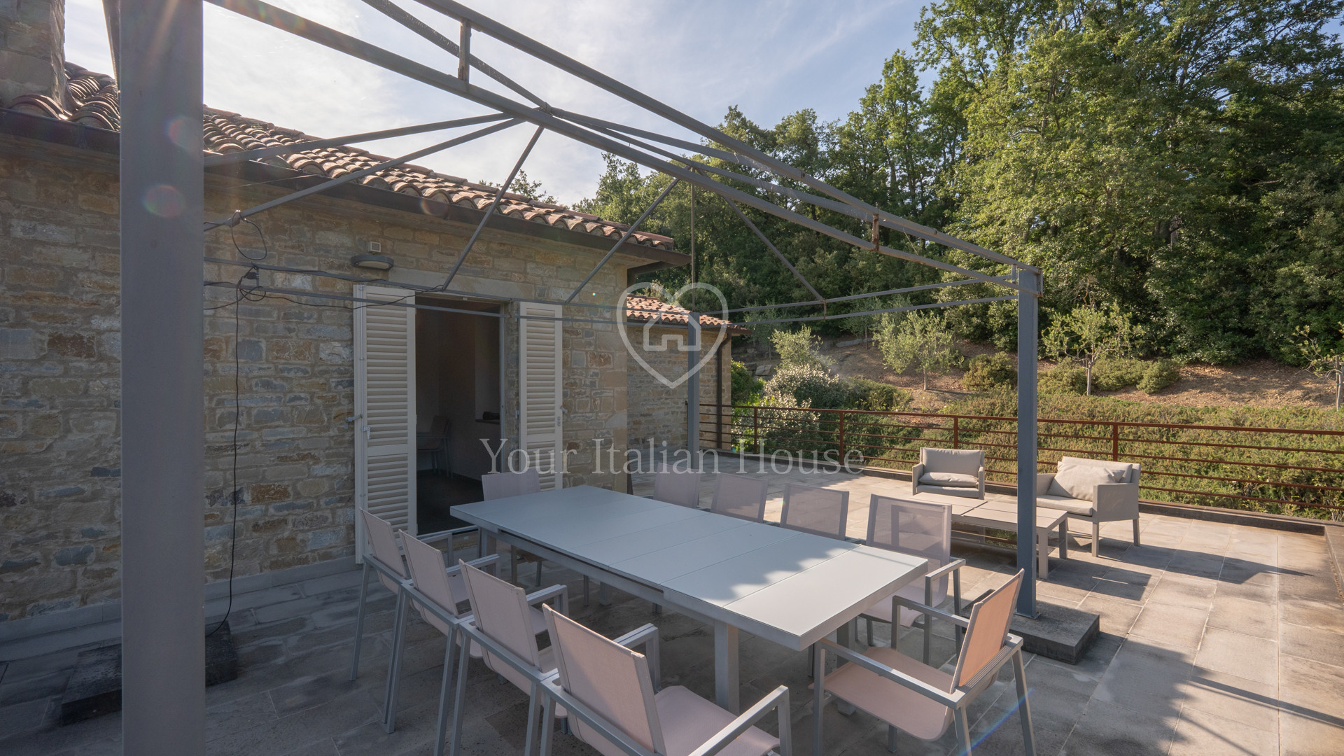Dit prachtige pand, uniek in zijn soort en volledig gerenoveerd, bevindt zich in een schitterend omheind park van ongeveer 3.700 m² met fruitbomen en olijfbomen. Het hoogtepunt van de buitenruimte is zonder twijfel het verwarmde zwembad van 12 x 5 m, dat maximaal comfort biedt in elk seizoen. Het zwembad heeft een gelijkmatig, randloos oppervlak, wat een visueel spectaculair effect creëert en optimaal uitzicht biedt over het panoramische landschap.Op de begane grond verwelkomt de villa u met een ruime open keuken, waarin functioneel design en innovatie samenkomen. De keuken, uitgerust met hoogwaardige apparatuur en luxe afwerkingen, vormt het hart van het huis, ideaal voor gezellige momenten en culinaire hoogstandjes. Naast de keuken bevindt zich de royale woonkamer, verlicht door grote ramen. Ook op de begane grond bevindt zich een studeerkamer, ideaal voor werk of ontspanning met een goed boek. Twee slaapkamers en een badkamer maken dit niveau compleet en zorgen voor comfort en gebruiksgemak.Boven bieden twee tweepersoonsslaapkamers een privé en verfijnde sfeer, elk met een stijlvol ingerichte en-suite badkamer. Grote ramen bieden een prachtig uitzicht op het Trasimenomeer, en het ruime terras is een ideale plek om het landschap te bewonderen.De kelderverdieping herbergt een zeer ruime garage, ontworpen voor meerdere voertuigen, en biedt extra ruimte voor opslag of andere activiteiten. Deze multifunctionele ruimte is direct vanuit de woning toegankelijk.Kortom, deze villa is meer dan een huis: het is een ware woonervaring, waar modern design en natuurlijke schoonheid perfect samensmelten. De combinatie van elegante interieurs, charmante buitenruimtes en een adembenemend uitzicht op het Trasimenomeer maakt dit pand een unieke kans voor wie op zoek is naar het beste van hedendaags wonen in een exclusieve ambiance.
