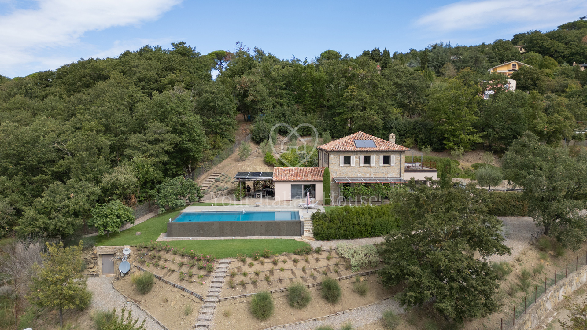Het hoofdgebouw biedt een warmtepompverwarmingssysteem met een thermohaard en warm-koud split-units. Verder zijn er een 9-kW fotovoltaïsch systeem en LPG.