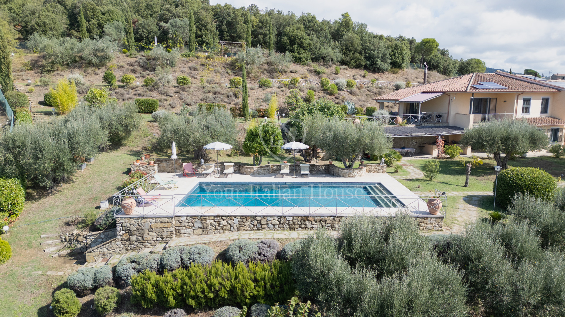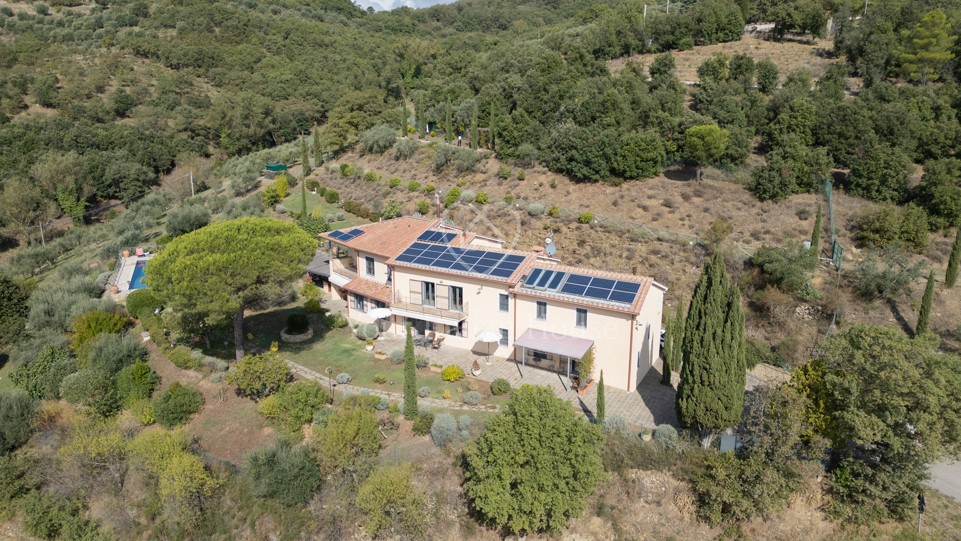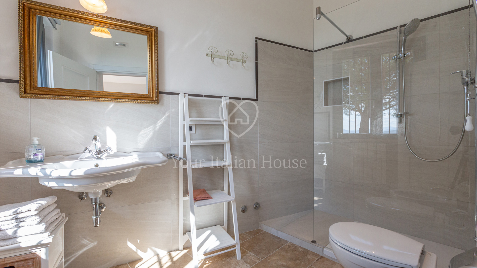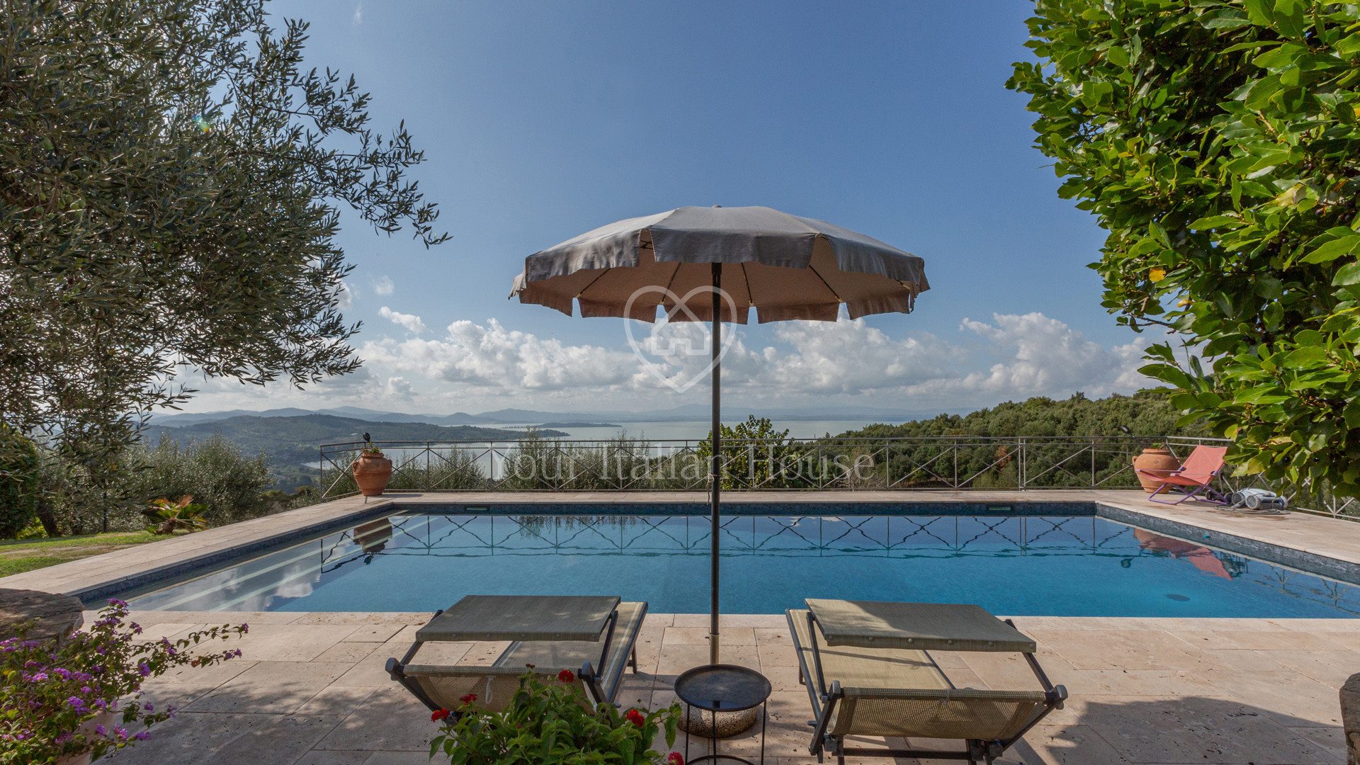 Op de groene heuvels van het meer van Trasimeno, op een panoramische positie, staat deze prachtige recent gerenoveerde villa. Het pand van ongeveer 370 m² is verticaal verdeeld in 2 wooneenheden. Het hoofdgedeelte bestaat uit een grote lichte woonkamer, een keuken met grote ramen van waaruit je het prachtige uitzicht op het meer van Trasimeno kunt bewonderen, een slaapkamer en 2 badkamers. Een interne trap leidt naar de eerste verdieping waar zich een grote woonkamer met open haard, 3 slaapkamers en 3 badkamers bevinden. Het tweede appartement, intiemer en gezelliger, bestaat op de begane grond uit een woonkamer/keuken en een verdieping en op de eerste verdieping uit twee slaapkamers met een panoramisch uitzicht op het omringende landschap en een badkamer. Om het pand compleet te maken, is er ongeveer 16.000 m² grond met ongeveer 150 olijfbomen in productie en een groene en goed onderhouden tuin die een ideale ruimte is om te ontspannen terwijl je het uitzicht op het meer bewondert. Er is ook een zwembad van 12×6.