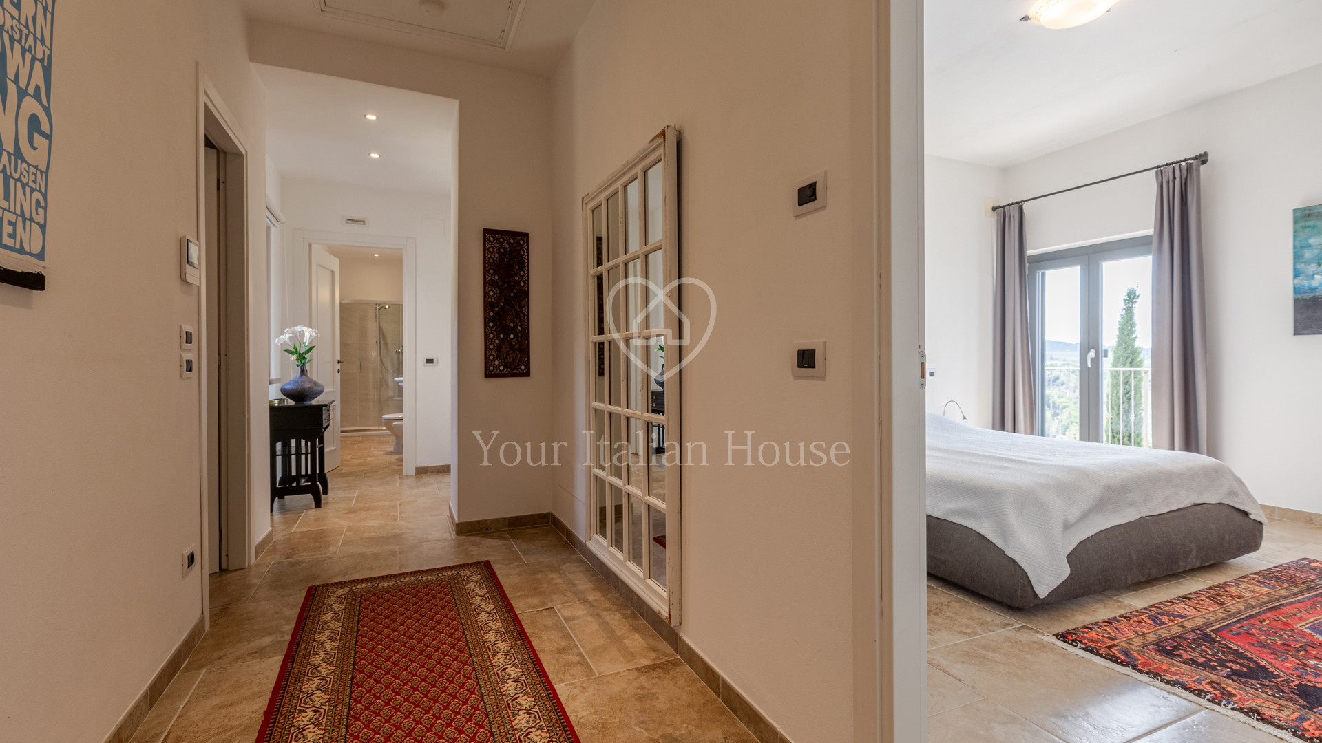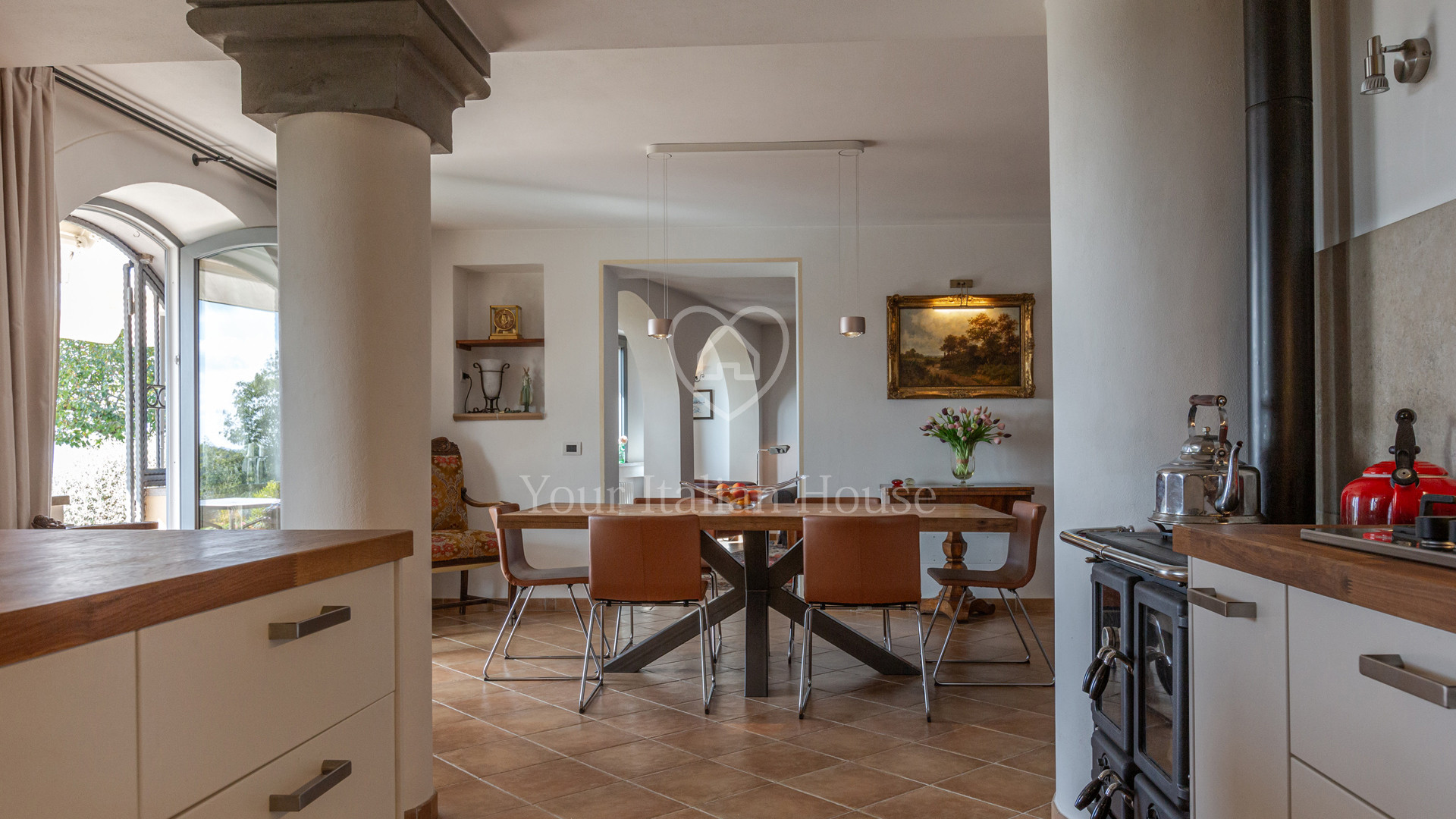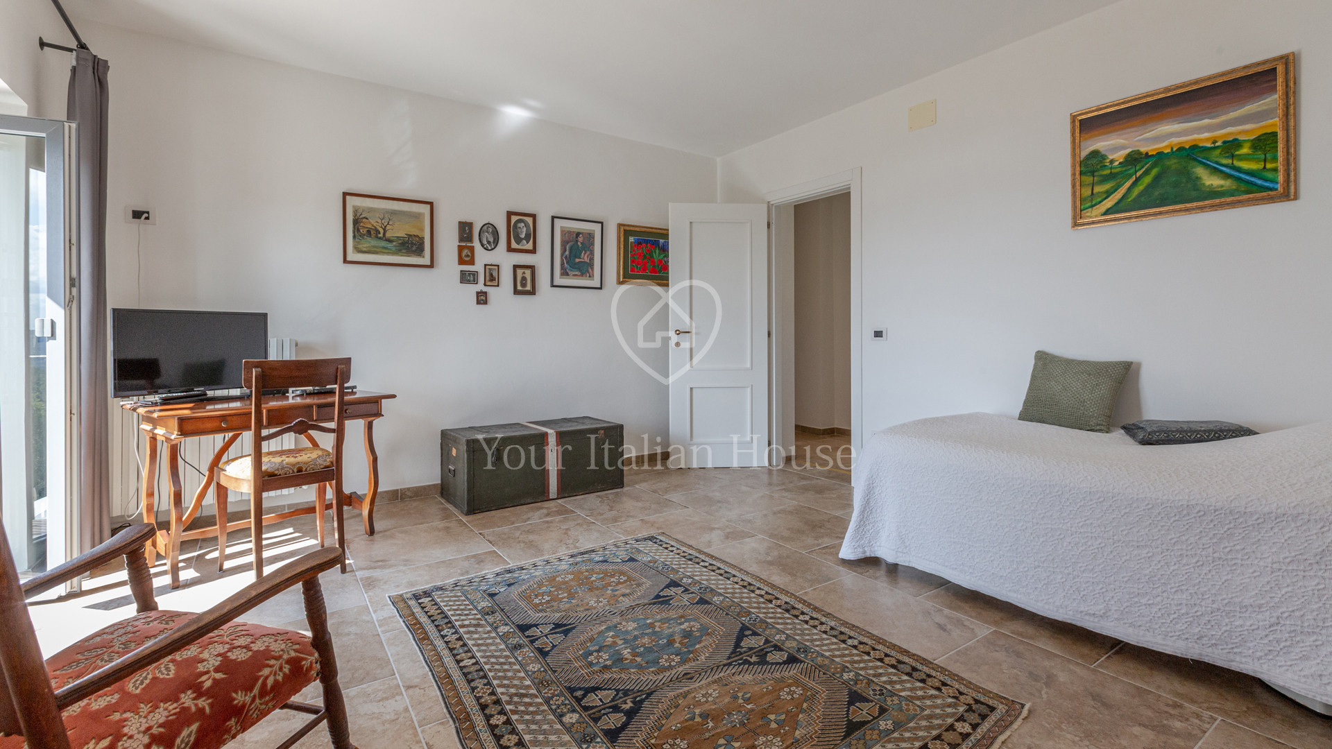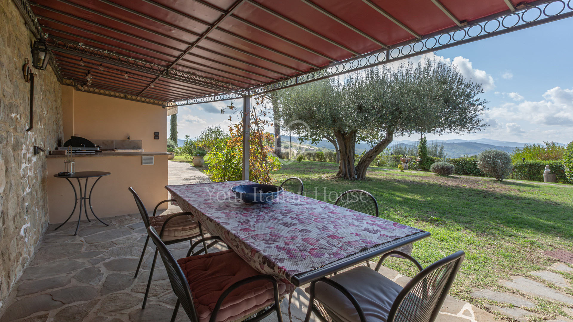 Op de groene heuvels van het meer van Trasimeno, op een panoramische positie, staat deze prachtige recent gerenoveerde villa. Het pand van ongeveer 370 m² is verticaal verdeeld in 2 wooneenheden. Het hoofdgedeelte bestaat uit een grote lichte woonkamer, een keuken met grote ramen van waaruit je het prachtige uitzicht op het meer van Trasimeno kunt bewonderen, een slaapkamer en 2 badkamers. Een interne trap leidt naar de eerste verdieping waar zich een grote woonkamer met open haard, 3 slaapkamers en 3 badkamers bevinden. Het tweede appartement, intiemer en gezelliger, bestaat op de begane grond uit een woonkamer/keuken en een verdieping en op de eerste verdieping uit twee slaapkamers met een panoramisch uitzicht op het omringende landschap en een badkamer. Om het pand compleet te maken, is er ongeveer 16.000 m² grond met ongeveer 150 olijfbomen in productie en een groene en goed onderhouden tuin die een ideale ruimte is om te ontspannen terwijl je het uitzicht op het meer bewondert. Er is ook een zwembad van 12×6.